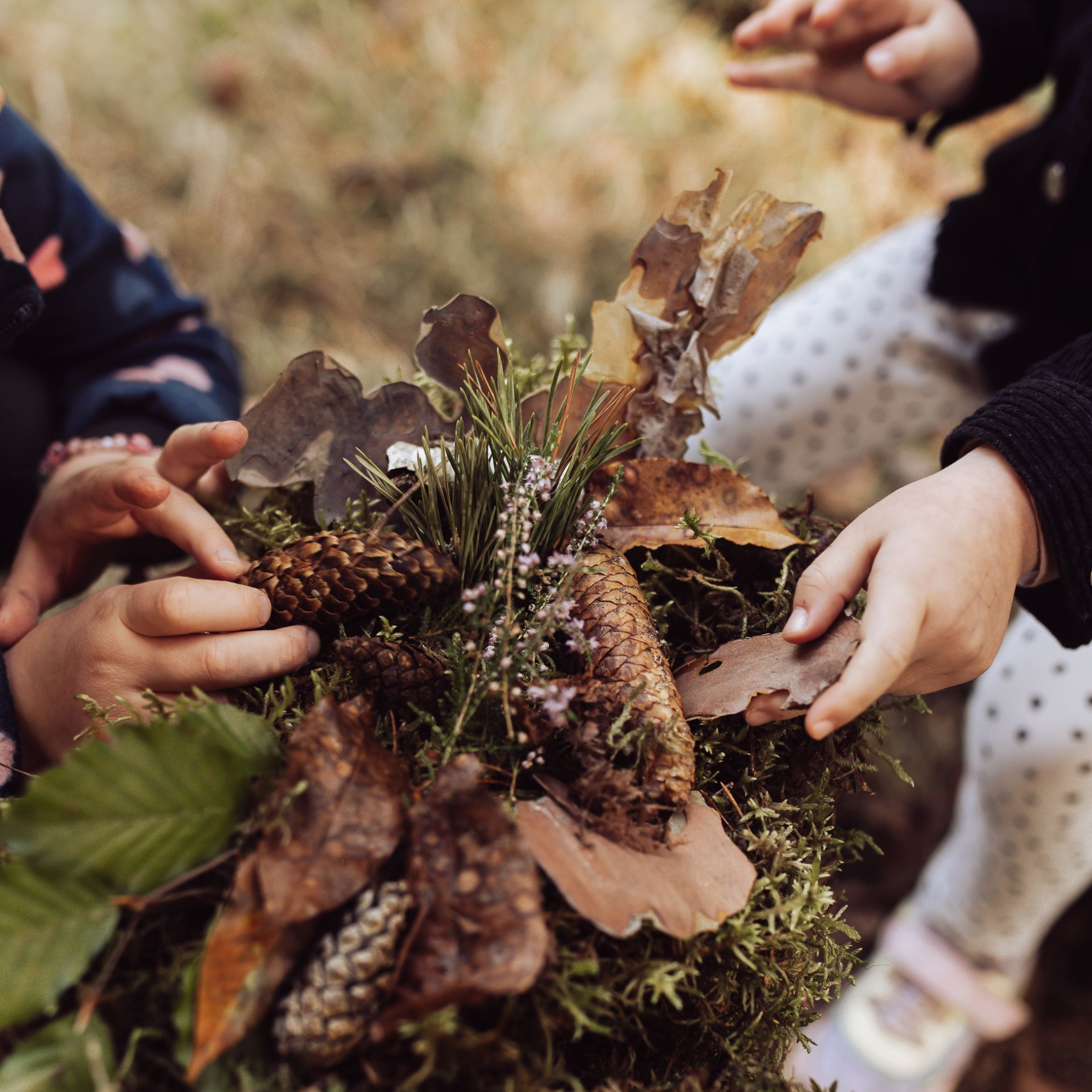 Der Vormittag gehört dem Wald. Jeden morgen spazieren wir zu unserem Waldplatz im Reichelsdorfer Forst. Dort beobachten wir Tiere, bauen mit Naturmaterialien und erleben die Jahreszeiten hautnah. Der Wald bietet unendliche Möglichkeiten für Spiel, Bildung und persönliche Entwicklung – ganz ohne Spielzeug.